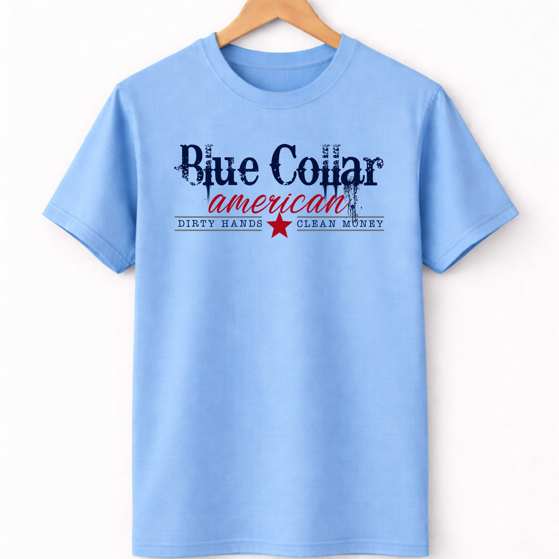 The Blue-Collar American tee is for the ones who clock in early, work with their hands, and take pride in providing. Dirty hands. Clean money. No apologies.